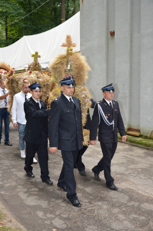 Uroczystość rozpoczęła msza św. odprawiona w czaplineckim amfiteatrze przez ks. Jacka Brakowskiego, podczas której poświęcono wieńce dożynkowe, plony oraz chleb. Następnie uformowano barwny korowód, prowadzony przez Starostę i Starościnę dożynek - Zbigniewa Andziaka i Agnieszkę Drabiszczak.