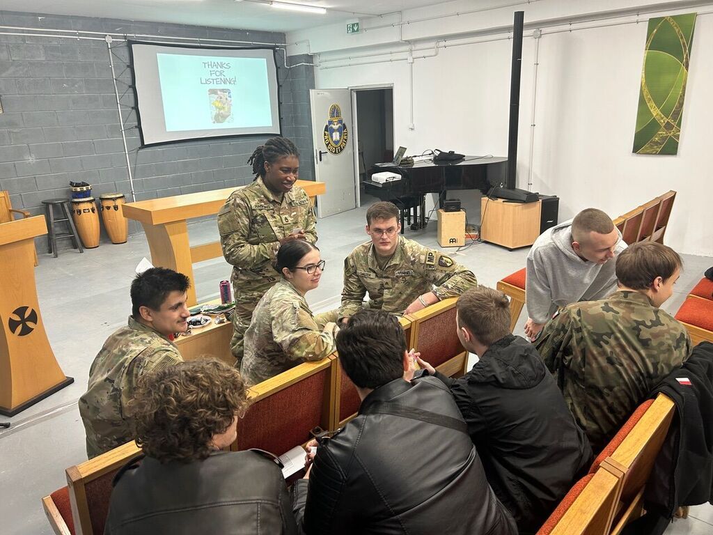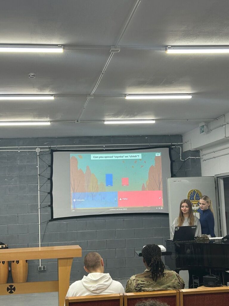 Podczas zajęć uczestnicy brali udział w ciekawych ćwiczeniach językowych, rozmawiali o polskich tradycjach oraz poznawali codzienne życie amerykańskich żołnierzy. Atmosfera spotkania była bardzo przyjazna, pełna zaangażowania i uśmiechu.