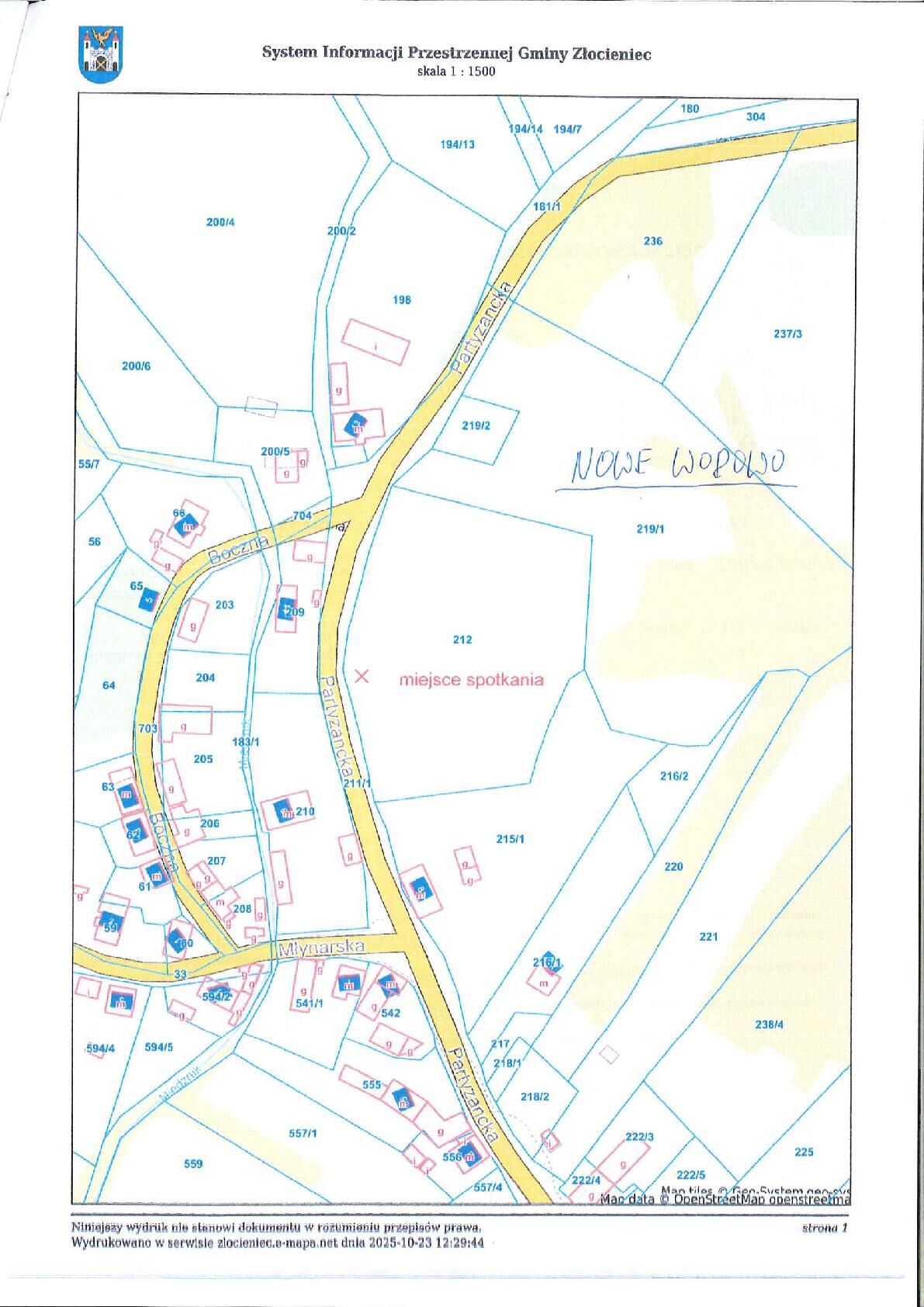 Na podstawie § 32 ust. 7 rozporządzenia Ministra Rozwoju, Pracy i Technologii z dnia 27 lipca 2021 r. w sprawie ewidencji gruntów i budynków (Dz.U. z 2024 r. poz. 219 ze zm.) Starosta Drawski, na wniosek wykonawcy pracy geodezyjnej BCGEO Usługi Geodezyjne Robert Cieślak z siedzibą w Szczecinku, zarejestrowanej pod nr ID GK.6640.1201.2025, informuje o umieszczeniu zawiadomienia o czynnościach podjętych w celu ustalenia przebiegu granicy działki ewidencyjnej oznaczonej w ewidencji gruntów i budynków jako działka nr 211/1 z działkami nr 209, 704, 200/5, 200/2, 198, 181/1, 236, 219/1, 219/2, 215/1 położonymi w obrębie ewidencyjnym Nowe Worowo, gmina Złocieniec, w zawiązku z brakiem adresów pobytu stałego i zameldowania na pobyt stały współwłaścicieli dz. nr 215/1.