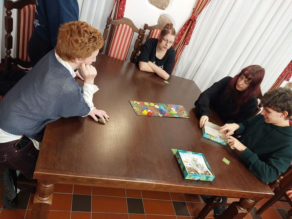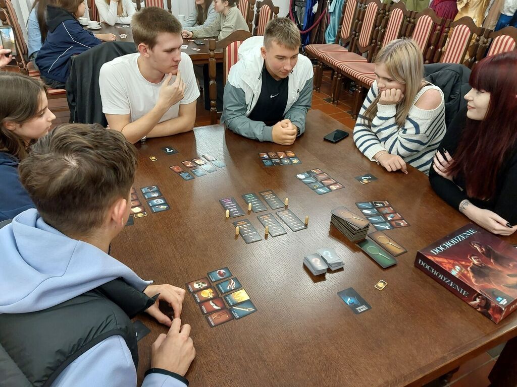 Tego samego dnia we współpracy z pracownikami Biblioteki Publicznej w Kaliszu Pomorskim - odbyło się spotkanie z Maciejem Przybytniakiem z Klubu Gier Planszowych Psia Kostka. Uczniowie internatów, dla których to spotkanie zostało zorganizowane, mogli poznać nowości wydawnicze gier planszowych i paragrafowych, pograć, zintegrować się, spędzić w ciekawej formie poniedziałkowe popołudnie. Warsztaty spotkały się z dużym zainteresowaniem, gdyż wzięło w nich udział niemal 30 uczniów szkoły.