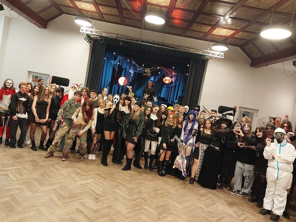 Środa 29 października była dniem, na który czekało wiele osób. W Ośrodku Kultury w Kaliszu Pomorskim Samorząd Uczniowski - w ramach Klubu Muzycznego Strefa Harmonii - zorganizował Rockotekę Halloweenową. W imprezie wzięło udział ponad 70 uczniów Zespołu Szkół w Kaliszu Pomorskim. Uczestnicy wykazali się ogromną kreatywnością i pomysłowością – każda osoba przyszła w halloweenowym przebraniu. Członkowie SU zorganizowali playlistę, poczęstunek, konkurs na najciekawsze przebranie, dekorowali stoliki. Szczególne podziękowanie należą się pracownikom Ośrodka Kultury z dyrektorem Natalią Szynal na czele, za możliwość zorganizowania tego wydarzenia oraz za przygotowanie wspaniałej dekoracji, a także za wspólną zabawę. Pani Natalia Szynal podziękowała młodzieży za tak wspaniałą organizację i zaangażowanie.
