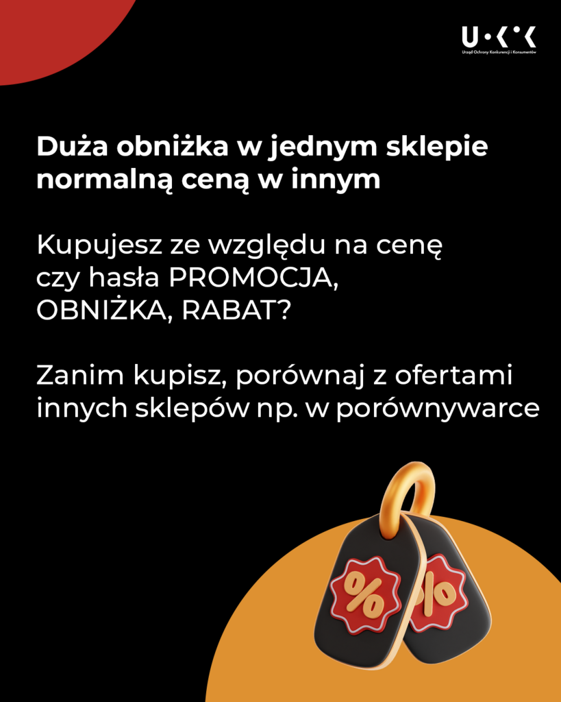 W promocjach liczą się liczby – to one mają przyciągnąć Twoją uwagę. Nie tylko przekreślona kwota i wielkie „-70%”, lecz także czytelna i jasna najniższa cena z 30 dni przed obniżką. To od niej powinien być naliczony rabat. Informacja o tej cenie powinna pojawić się wszędzie tam, gdzie sklep kusi obniżką: na etykiecie, w e-sklepie czy aplikacji. Dzięki temu możesz ocenić, czy rabat to realna obniżka czy tylko MEGA trik sprzedażowy i podmiana etykiety. Więcej o zasadach oznaczania cen w naszym komunikacie prasowym i wyjaśnieniach.