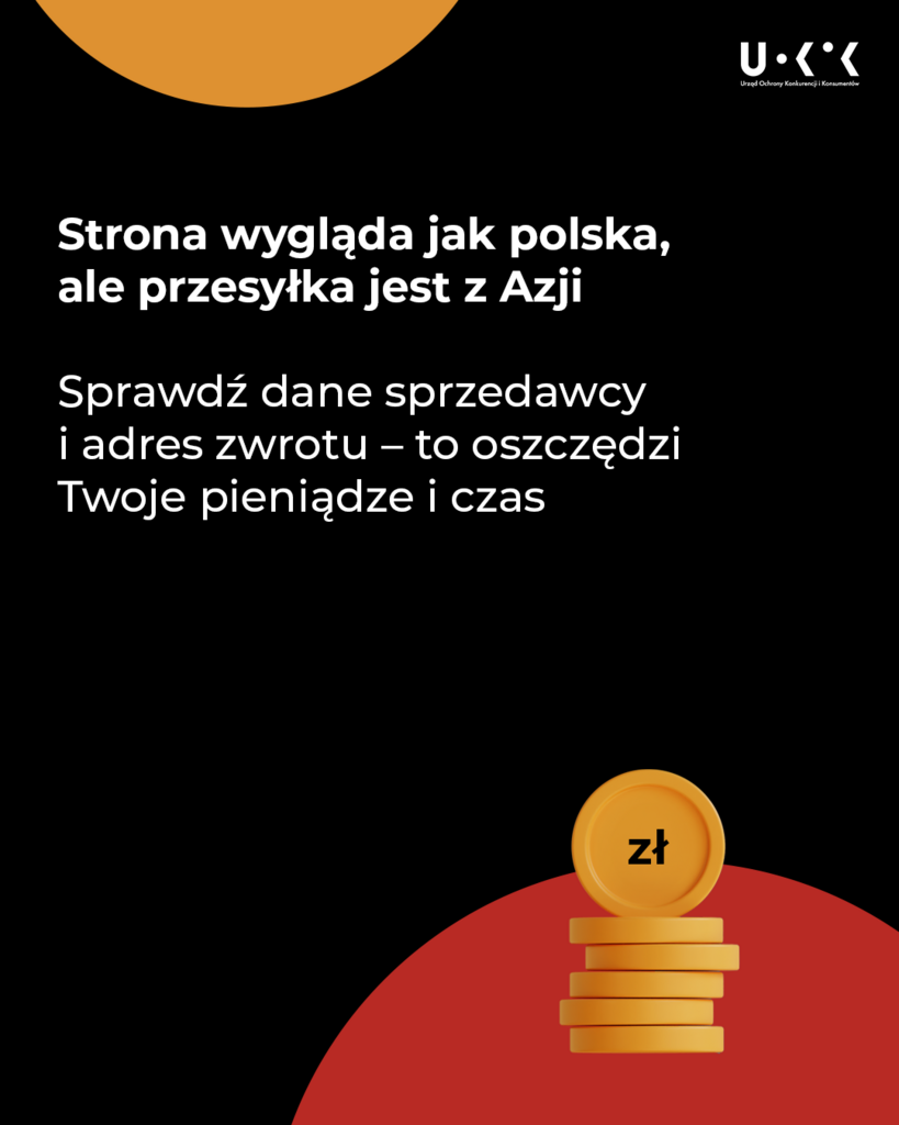 W mediach społecznościowych i wyszukiwarkach pojawia się wiele reklam, które na pierwszy rzut oka wyglądają jak atrakcyjne oferty rodzimych sklepów: polsko brzmiąca nazwa, opowieść o „likwidacji magazynu”, obietnice obniżek do -80%. Dopiero po zajrzeniu do regulaminu okazuje się, że faktycznym sprzedawcą jest przedsiębiorca spoza UE, a strona działa na zasadzie pośrednictwa lub dropshippingu. Więcej o związanych z tym SUPER pułapkach jest w naszym poradniku „Zakupy z Azji?”.
