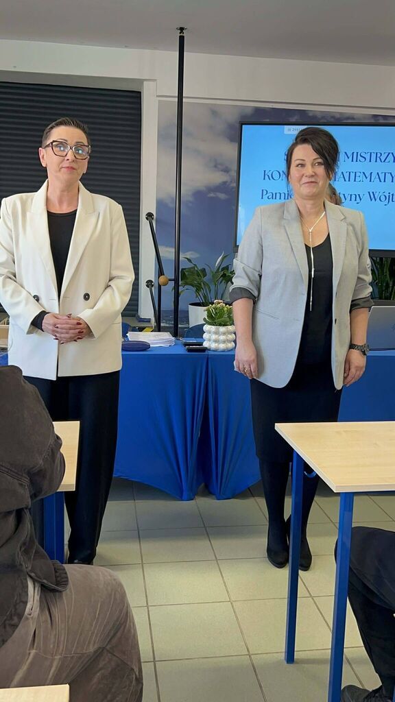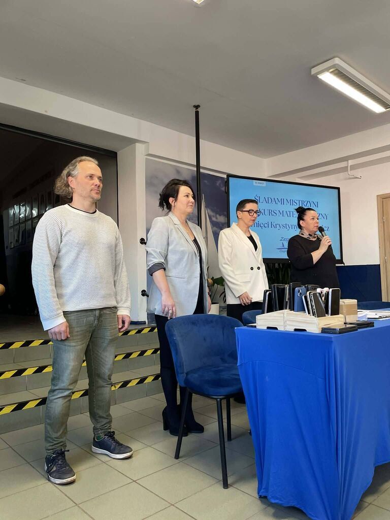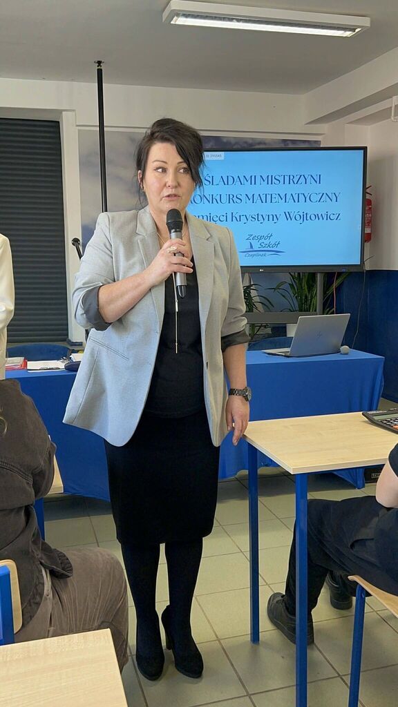 Zanim uczniowie rozpoczęli zmagania z zadaniami matematycznymi, Pani Wioletta Piotrowska, przedstawiła portret Pani Krystyny Wójtowicz, który powstał na podstawie wywiadu, jakiego udzieliła Pani Izabela Małkowska - prywatnie córka Pani Krystyny Wójtowicz oraz jedna z inicjatorek konkursu.