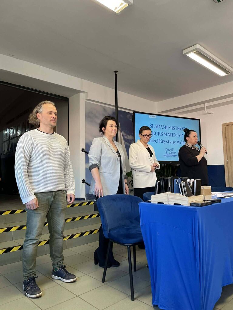 Zadania konkursowe zostały przygotowane przez nauczycieli matematyki Sylwię Czech, która świetnie sprawdziła się w roli prowadzącej oraz Marcina Nikodema.