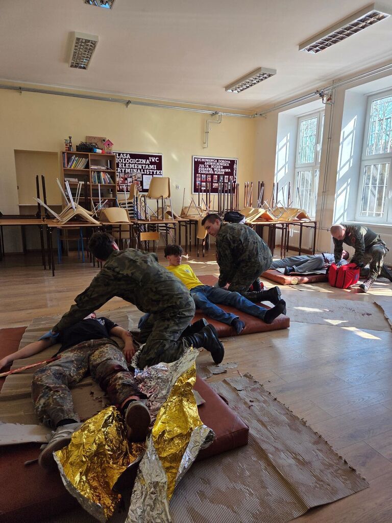 Serdeczne podziękowania dla uczennic ze Szkolnej Grupy Medycznej Medical Team: Wiktorii Gołębiewskiej, Weroniki Dżalok oraz Wiktorii Kołodziejczyk, a także kadeta Igora Wolskiego. Ich wsparcie i zaangażowanie w przygotowanie drużyny do konkurencji z zakresu pierwszej pomocy przedmedycznej były niezwykle cenne.